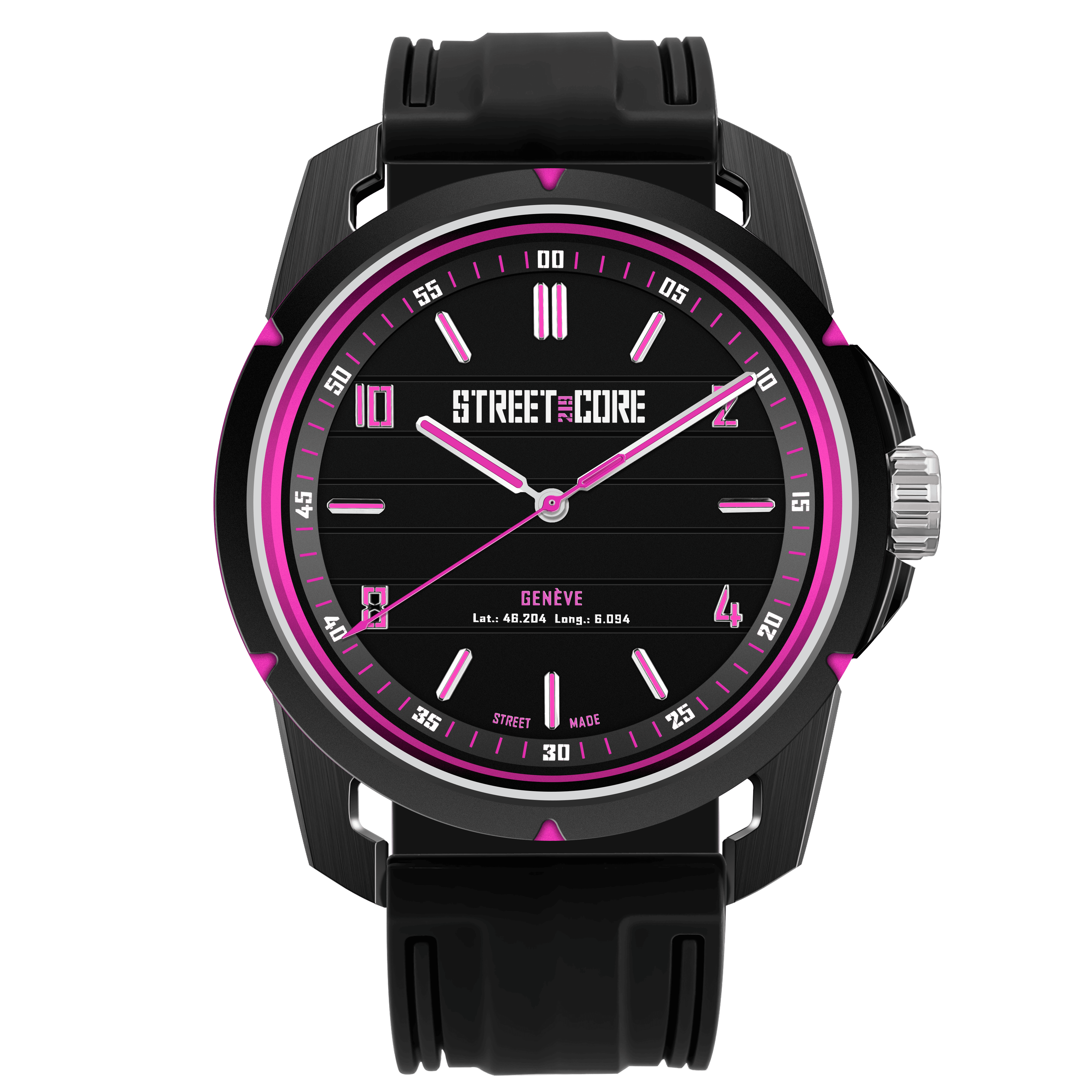 Specifics: Polished logo on the crown and slogan (STREET CREATE LEGENDS) engraved on the case flank